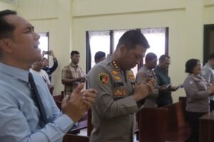 Newsils.com || Kapolresta Sidoarjo Kombes. Pol. Christian Tobing bersama anggota yang beragama Kristen mengikuti kegiatan Binrohtal di Gereja Oikumene Polresta Sidoarjo, Jumat (27/3/2026).