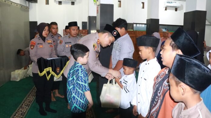 Kegiatan kemudian dilanjutkan dengan pemberian santunan kepada anak yatim piatu sebagai bentuk kepedulian dan komitmen sosial Polres Nganjuk terhadap masyarakat.