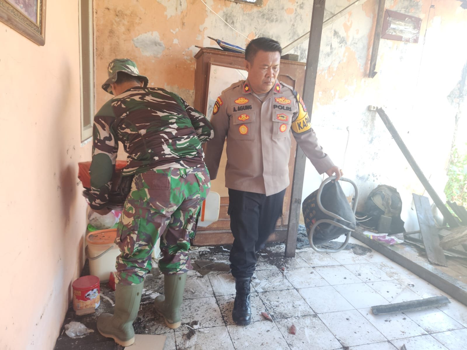 Dengan penuh semangat gotong royong, aparat TNI–Polri dan masyarakat bahu membahu mengangkat material bangunan, merapikan sisa-sisa reruntuhan, serta membersihkan area sekitar rumah agar kembali aman dan nyaman.