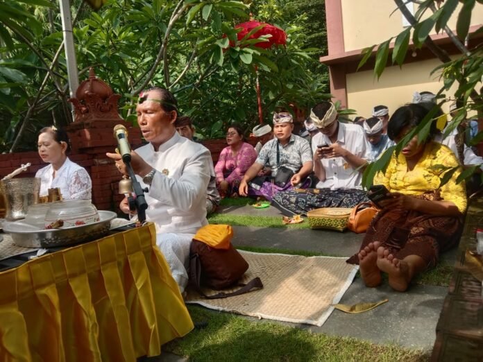 Newsils.com || Anggota Polri maupun ASN di lingkup Polresta Sidoarjo yang beragama Hindu menggelar ibadah Suci Bulan Purnama dan Piodalan, dalam rangka memperingati tiga tahun Kertha Bumi Bhayangkara yang ada di dalam Mako Polresta Sidoarjo.