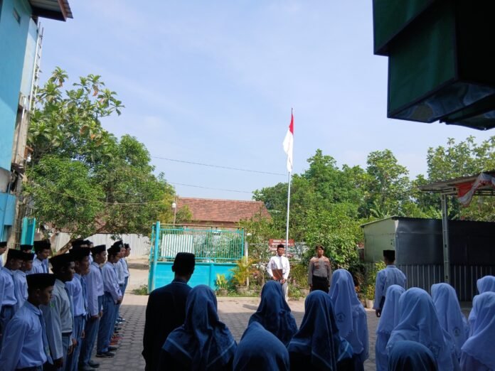 Newsils.com || Sidoarjo – Tumbuhkan semangat nasionalisme di kalangan pelajar, Kanit Binmas Polsek Krembung Polresta Sidoarjo Aiptu Adin Purwanto hadir sebagai pembina upacara di MA Pondok Pesantren Burhanul Hidayah, Krembung, Senin (29/9/2025).