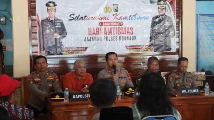 Newsils.com || Nganjuk – Kapolres Nganjuk AKBP Henri Noveri Santoso, S.H., S.I.K., M.M. melakukan pertemuan bersama Forkopimcam Sawahan, tokoh agama, tokoh masyarakat, serta unsur organisasi kemasyarakatan dalam kegiatan Silaturahmi Kamtibmas yang berlangsung di Kecamatan Sawahan, Jumat (1/8/2025).