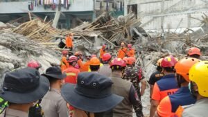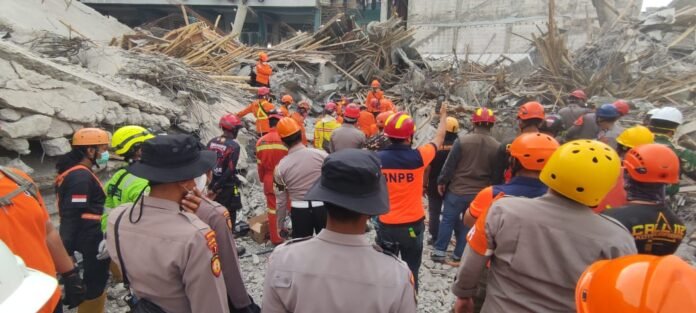 Sementara tim SAR, medis, TNI, Polri dan relawan terus bergerak saling berbagi tugas. Ada yang terus berupaya mengevakuasi jenazah dari timbunan material dan ada yang membersihkan puing-puing material.