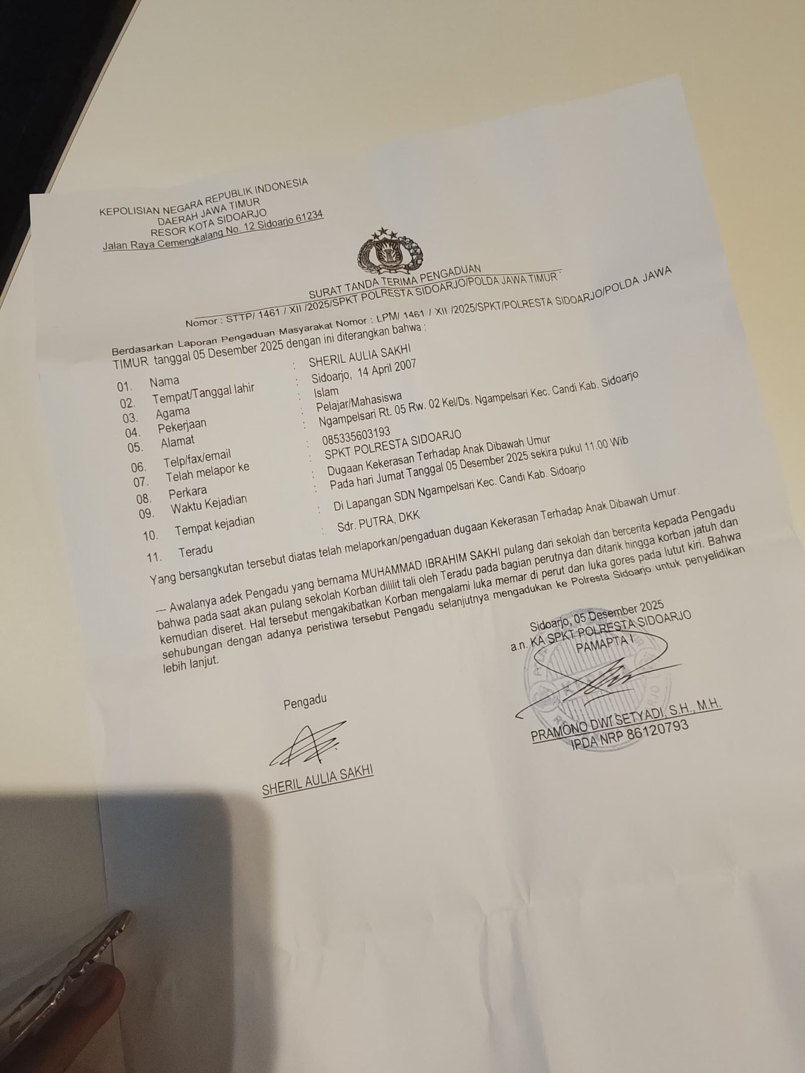 Kanit Reskrim PPA Polresta Sidoarjo, Iptu Utun, telah menerima informasi awal terkait kejadian ini dan berharap proses penyelidikan dapat berjalan cepat. Pihaknya menegaskan bahwa segala bentuk kekerasan terhadap anak, termasuk bullying di lingkungan sekolah, tidak boleh dibiarkan.