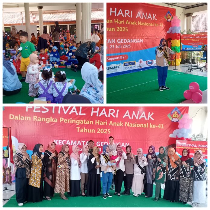 “Ratusan sekolah PAUD/TK Kecamatan Gedangan Peringati Perayaan HUT Anak Nasional di pendopo Kecamatan Gedangan.