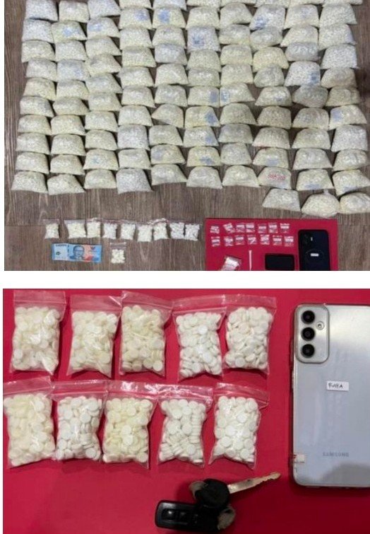 Dalam penggerebekan tersebut, petugas mengamankan barang bukti berupa 104.961 butir pil double L, 14 poket sabu dengan berat total 2,42 gram, satu unit timbangan elektrik, tiga bendel plastik klip kosong, satu alat sekrop dari sedotan, satu unit sepeda motor tanpa nomor polisi, dua unit telepon genggam, serta uang tunai sebesar Rp1 juta.