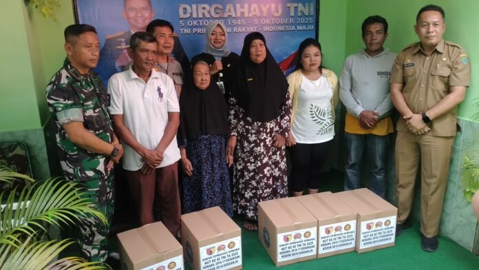 Newsils.com || Sidoarjo,Dalam rangka memperingati Hari Ulang Tahun TNI ke 80, Koramil Gedangan menggelar kegiatan tasyakuran dan bakti sosial pembagian 100 paket sembako kepada warga kurang mampu, bertempat di jalan raya Gedangan,Senin 6/10/25.