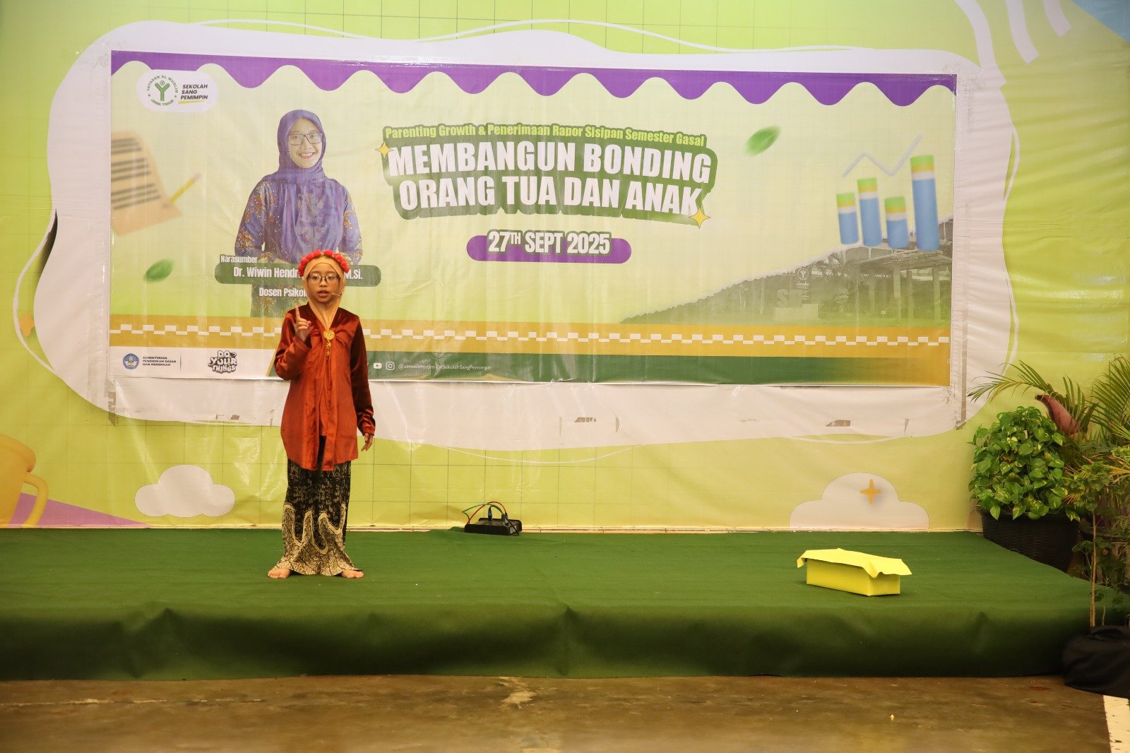 Acara dibuka dengan penampilan dari perwakilan siswa SD Al Muslim mulai dari paduan suara, dongeng, dan dipandu oleh MC dari siswa ekstrakurikuler Public Speaking. Kemudian acara dilanjutkan bersama narasumber kegiatan Parenting Growth, Dr. Wiwin. Kegiatan ini menjadi wadah reflektif sekaligus edukatif bagi orang tua untuk memahami lebih dalam pentingnya keterikatan emosional antara orang tua dan anak dalam kehidupan sehari-hari. Dalam paparannya, Dr. Wiwin Hendriani menekankan bahwa bonding yang kuat menjadi dasar terbentuknya karakter anak yang percaya diri, mandiri, serta memiliki ketahanan emosional yang baik. “Bonding bukan hanya tentang kebersamaan fisik, tetapi juga kehadiran emosional. Anak-anak yang merasa dicintai dan dihargai oleh orang tuanya cenderung tumbuh menjadi pribadi yang sehat secara psikologis,” ujar Dr. Wiwin.