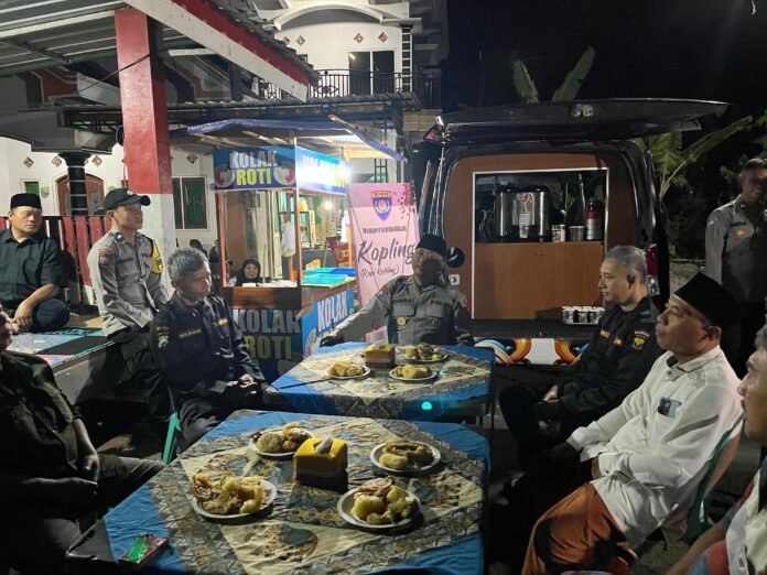 Suasana akrab tercipta saat warga dan aparat kepolisian duduk bersama membicarakan situasi kamtibmas di lingkungan mereka.