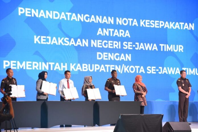 Newsils.com || Sidoarjo – Penandatanganan nota kesepakatan Restorative Justice (RJ) antara pemerintah daerah di Jawa Timur dengan seluruh Kejaksaan Negeri dilakukan. Penandatanganan kesepakatan kolaborasi penanganan terhadap pelaku dan korban serta keluarga pelaku tindak pindana yang perkaranya diselesaikan berdasarkan keadilan restoratif itu dilakukan di Dyndra Convention Hall Surabaya, Kamis, (9/10). Penandatanganan diawali oleh Kajati Jatim Kuntadi dengan Gubernur Jatim Khofifah Indar Parawansa yang kemudian disusul oleh seluruh kepada daerah di Jawa Timur.