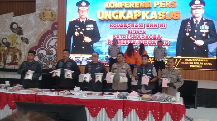 Hasil ungkap kasus ini disampaikan dalam konferensi pers di Mako Polresta Sidoarjo, pada Selasa (21/10/2025) oleh Kapolresta Sidoarjo Kombes Pol. Christian Tobing, Kepala BNNP Jawa Timur Brigjen Pol. Budi Mulyanto, Kepala BNNK Sidoarjo Kombes Pol. Gatot Soegeng Soesanto, serta Penyidik Madya BNNP Jatim AKBP. Eko Hengky Prayitno dan Kasat Resnarkoba Polresta Sidoarjo Kompol Riki Donaire Piliang.