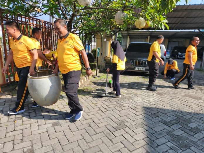 Sidoarjo,Newsils.com – Personel Polresta Sidoarjo dan Polsek jajaran lakukan kurve serentak, Jumat (6/2/2026). Kerja bakti kebersihan lingkungan mako tersebut sebagai wujud nyata dalam mewujudkan suasana tempat kerja sehat, bersih dan nyaman.