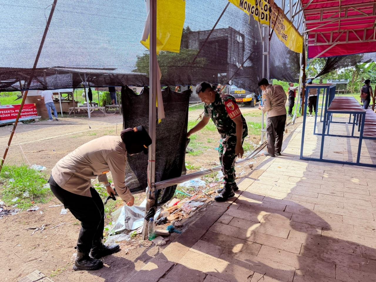 Tindakan yang kemudian dilakukan personel gabungan di lokasi, adalah membongkar sarana judi sabung ayam yang ada, memasang banner larangan perjudian, memberikan imbauan larangan keras kepada warga atau pihak siapapun yang melakukan kegiatan serupa kembali.