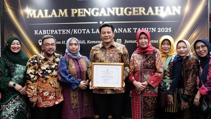 Perlu diketahui bahwa Kementerian Pemberdayaan Perempuan dan Perlindungan Anak (Kemen PPPA) menganugerahkan Penghargaan Kabupaten/Kota Layak Anak (KLA) 2025 kepada 355 Kabupaten/Kota, yang terdiri dari 22 kategori Utama, 69 kategori Nindya, 125 kategori Madya, dan 139 kategori Pratama.