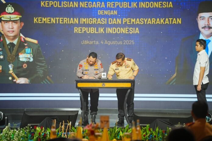 Nota kesepahaman tersebut tentang Sinergisitas Tugas dan Fungsi di Bidang Kepolisian, Keimigrasian dan Pemasyarakatan di Jakarta Pusat, Senin (4/8/2025). Penandatanganan tersebut dilaksanakan langsung oleh Kapolri Jenderal Listyo Sigit Prabowo dan Menteri Imipas Agus Andrianto.