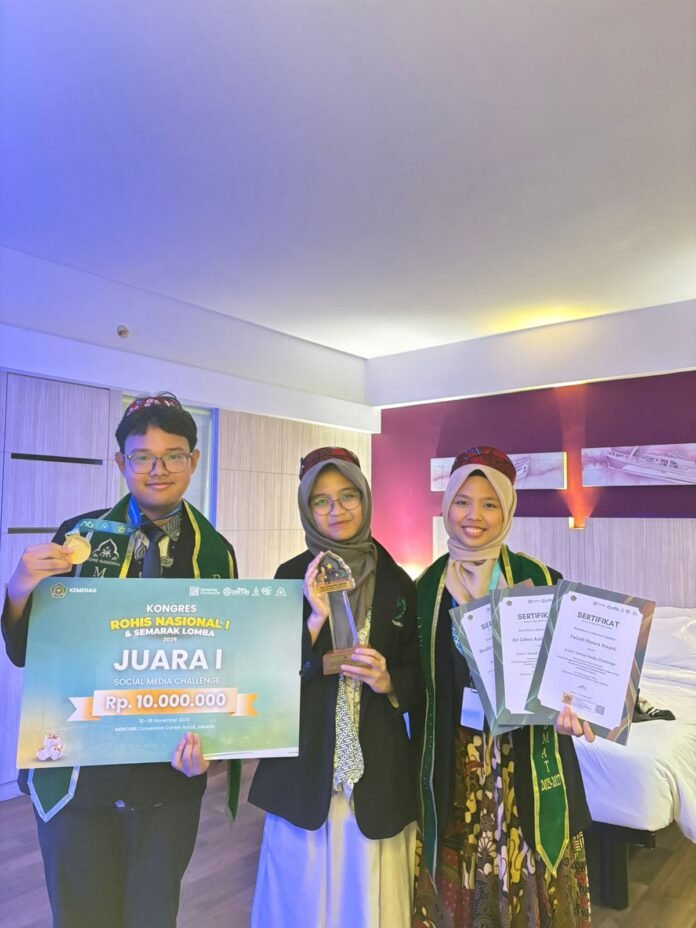 Newsils.com || Jakarta — Prestasi membanggakan kembali ditorehkan oleh SMA Al Muslim. Tiga siswa terbaiknya sukses meraih Juara 1 Lomba Social Media Challenge tingkat nasional yang diselenggarakan oleh Kementerian Agama Republik Indonesia dalam rangkaian kegiatan Kongres Rohis Nasional I Tahun 2025. Acara besar ini berlangsung pada 12–15 November 2025 di Jakarta dengan mengusung tema besar “Inspiring Future Leaders for Peace and Compassion”. Tema tersebut menjadi dasar bagi para peserta untuk menyampaikan pesan kedamaian, kepemimpinan, dan karakter moderasi melalui karya digital.
