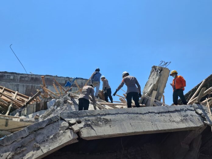 Sejak pagi hingga siang hari, petugas terus bekerja bergantian di area reruntuhan.