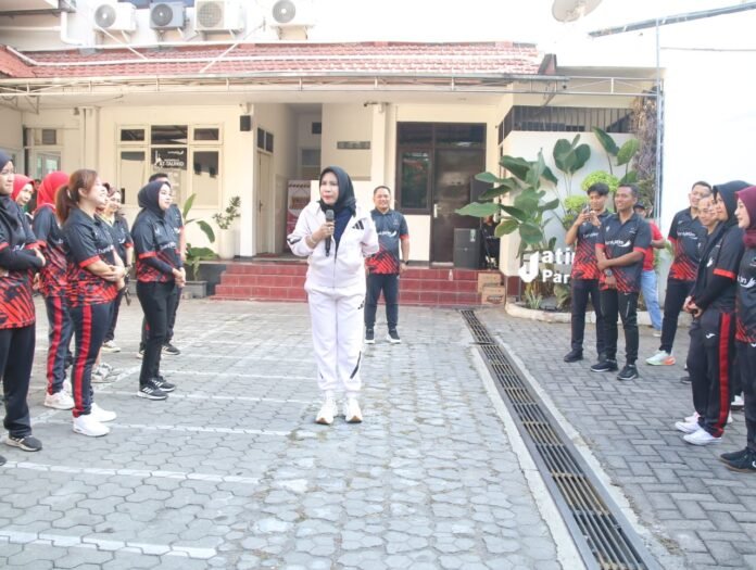 Newsils.com || Sidoarjo – Wakil Bupati Sidoarjo Hj. Mimik Idayana hadir dtengah-tengah pegawai Kantor Bank Jatim Cabang Sidoarjo dalam agenda rutin yaitu senam bersama, Jum’at 26/09/2025 di halaman Parkir Bank Jatim Cabang Sidoarjo.