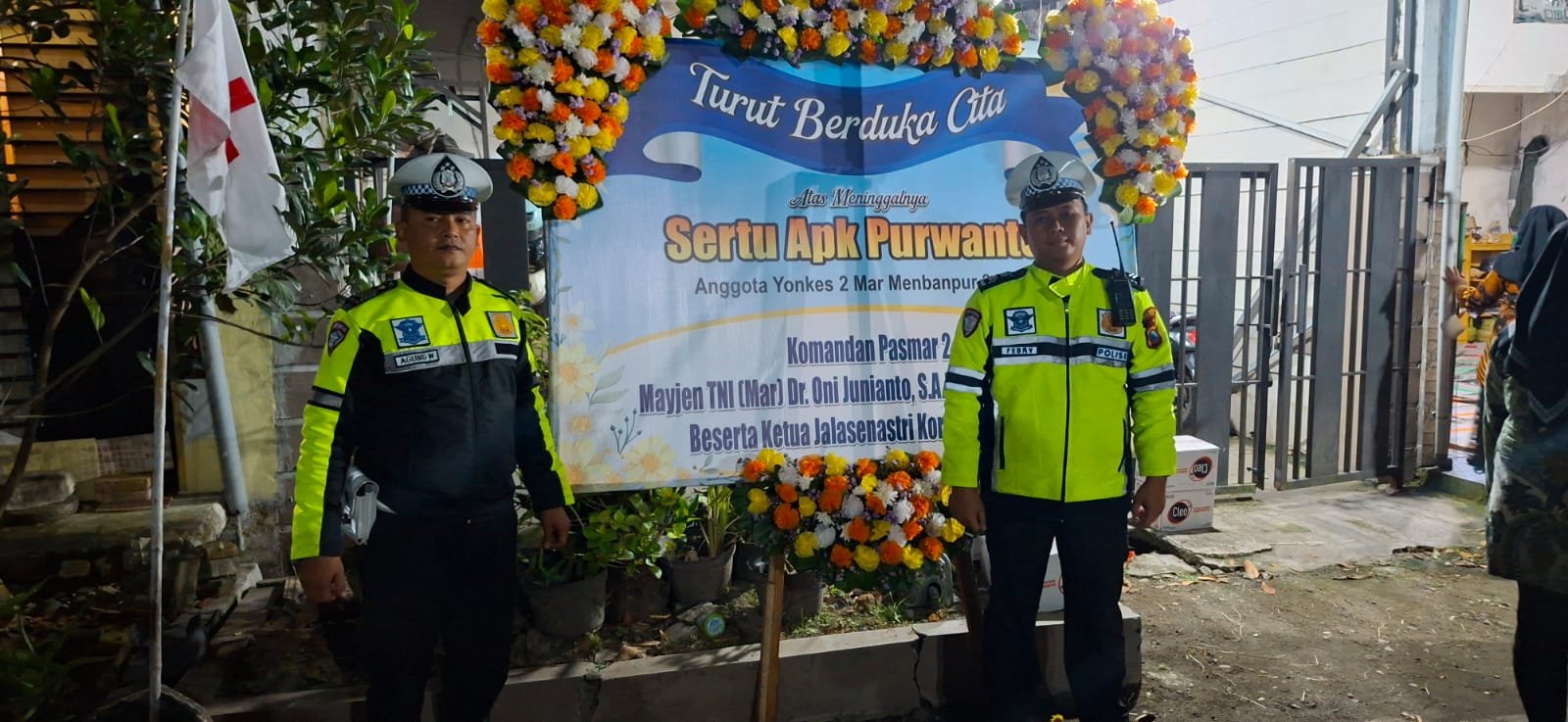 Newsils.com || Jajaran Polsek Krian Polresta Sidoarjo melaksanakan pengamanan dan pengawalan prosesi pemakaman almarhum Sertu Purwanto, anggota Yonkes 2 Marinir Menbanpur 2 Mar Pasmar 2 Karangpilang, sebagai bentuk penghormatan terakhir sekaligus pelayanan humanis kepada masyarakat, Sabtu malam (24/1/2026).